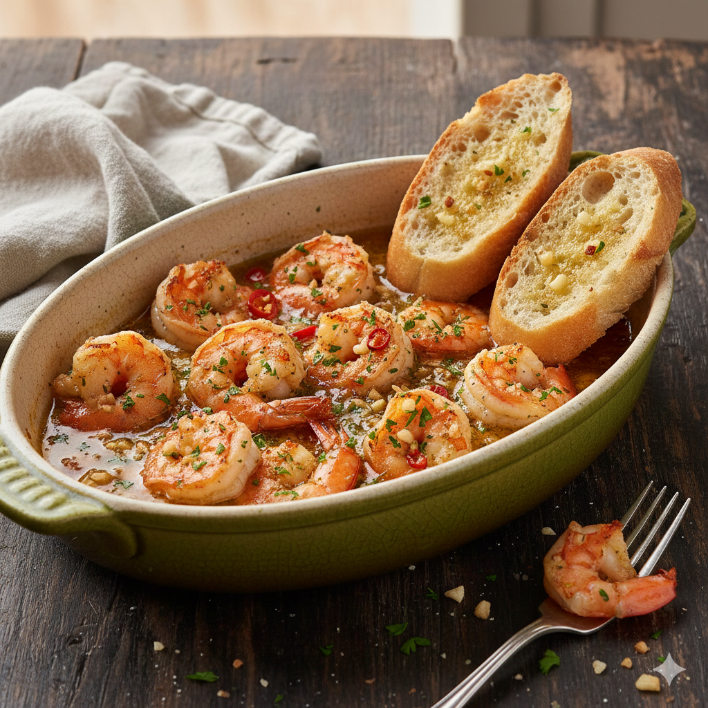 | Baked Garlic Shrimp | Garlic-butter lovers; cozy, indulgent start | Bread/garlic toast; steak or heavier mains |
