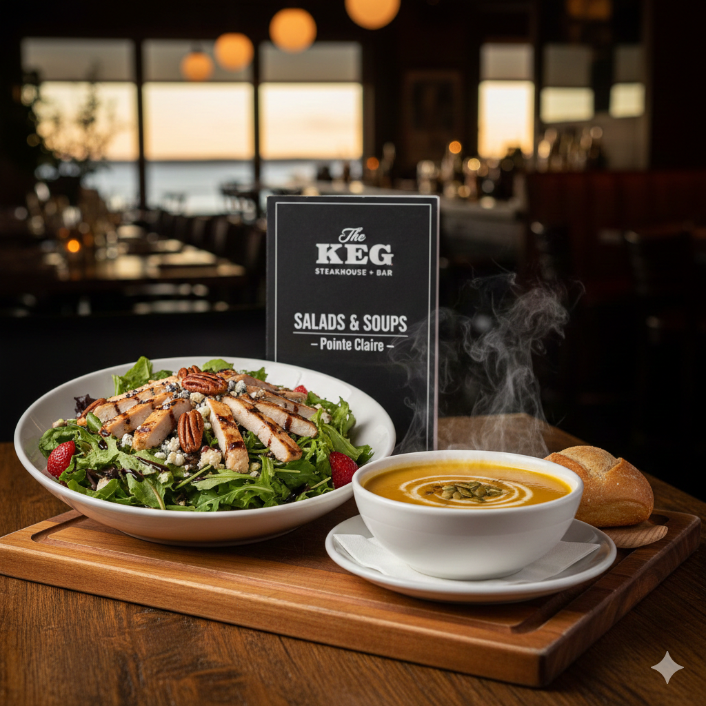 The salads and soups on The Keg menu offer refreshing and warm options. Guests often enjoy: